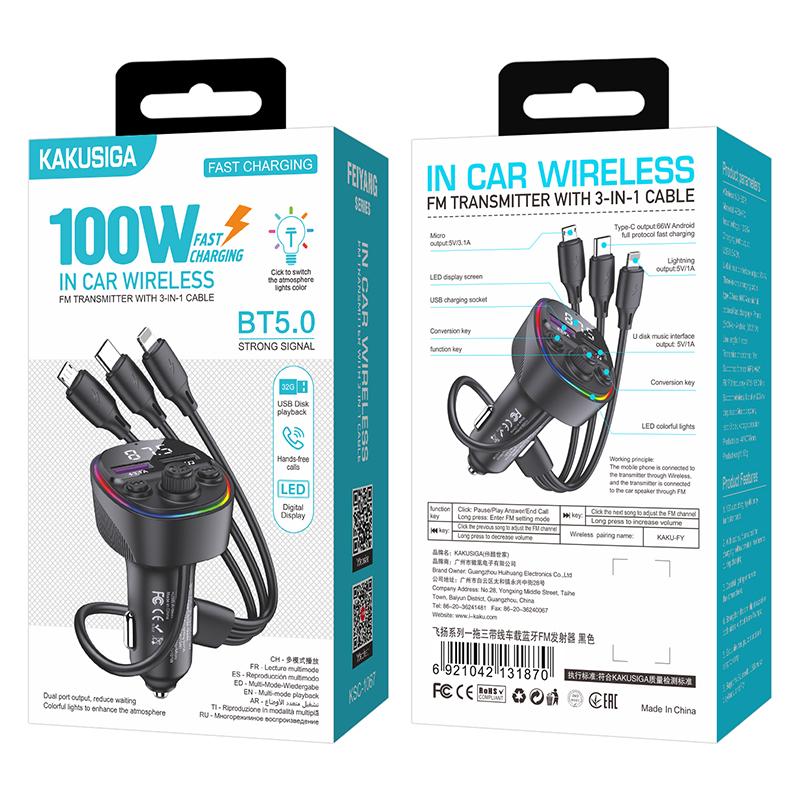 Kaku (KSC-1066) - Modulator FM | BT, 20W, 1xUSB-C, 1xUSB-A, PD, QC 3.0, Functie HandsFree, Black