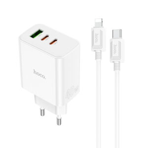 Hoco (C126A) – Incarcator Retea + Cablu Lightning, 40W, 2xUSB-C, 1xUSB-A, PD, QC 3.0, White