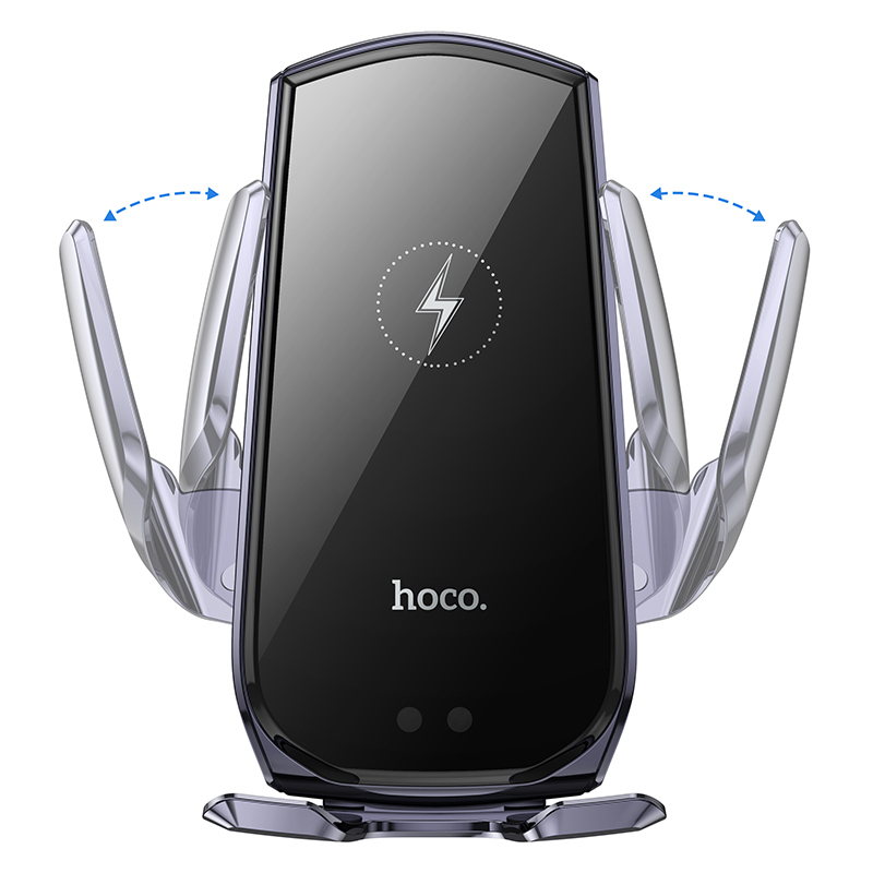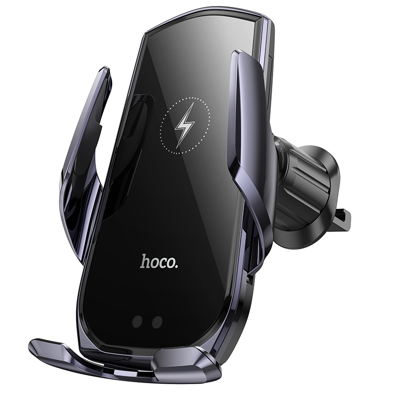 Hoco (CA202 Plus) – Suport Auto cu incarcare Wireless, 15W, montaj Ventilatie, cleme laterale, cablu USB-C, 1m, InfraRed, PullClip, Acumulator intern, Black/Metall
