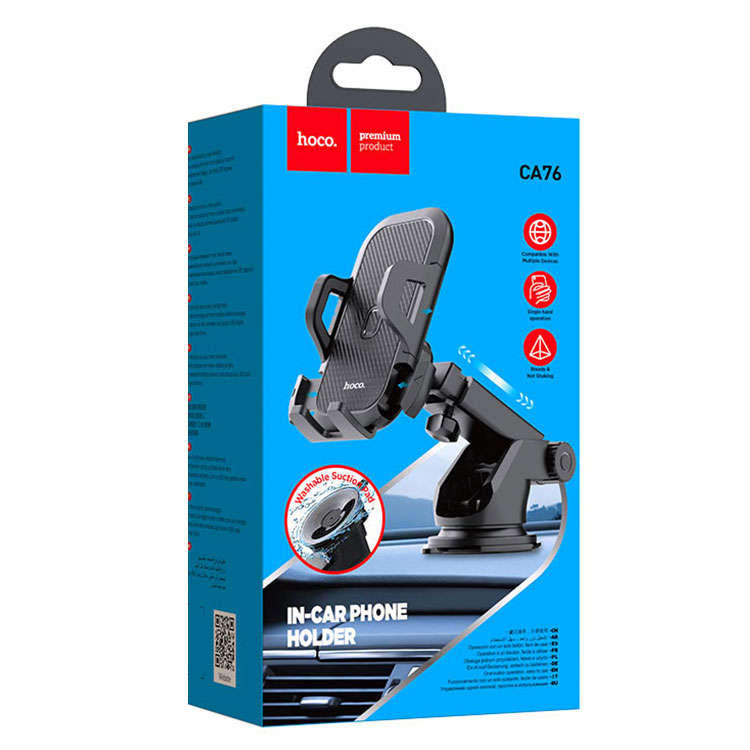Hoco (CA76) – Suport Auto, cu cleme laterale, montaj Bord, MultiAngle, brat ajustabil, Black