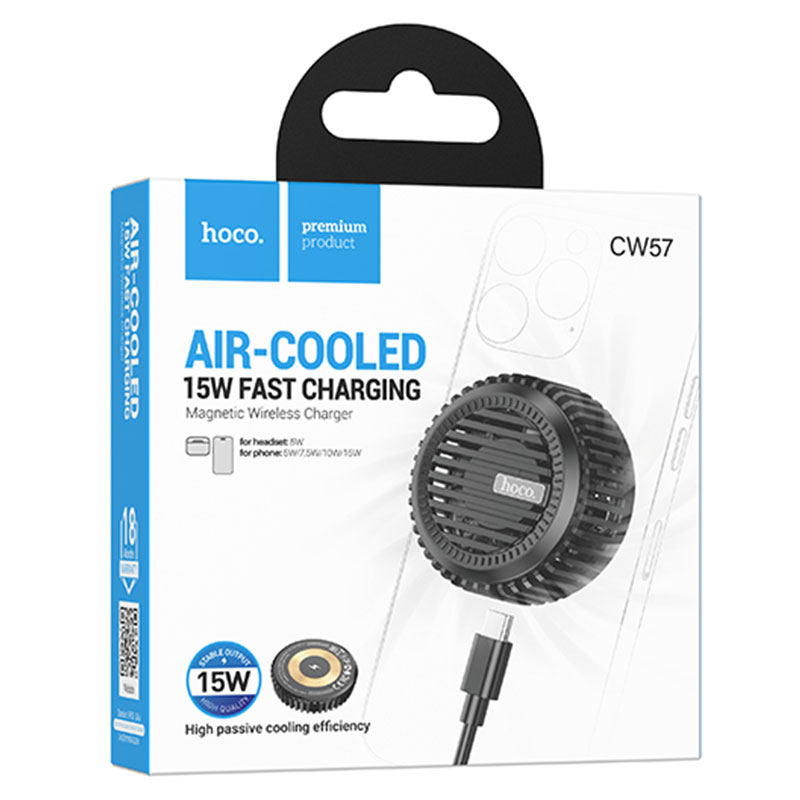 Hoco (CW57) – Incarcator Wireless, iPhone/AirPods, MagSafe cu Ventilator, 15W, Qi Charging, , Fast, Black