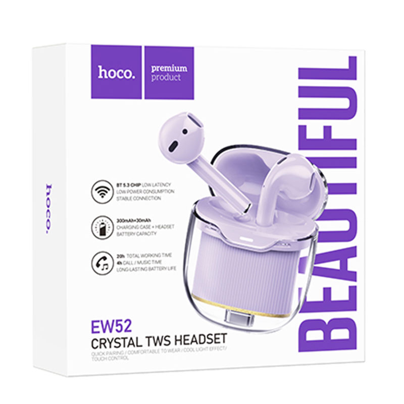 Hoco (EW60) - Casti Wireless, Ear Buds, BT 5.3, 150h StandBy, 300mAh, HiFi, Norman, Purple
