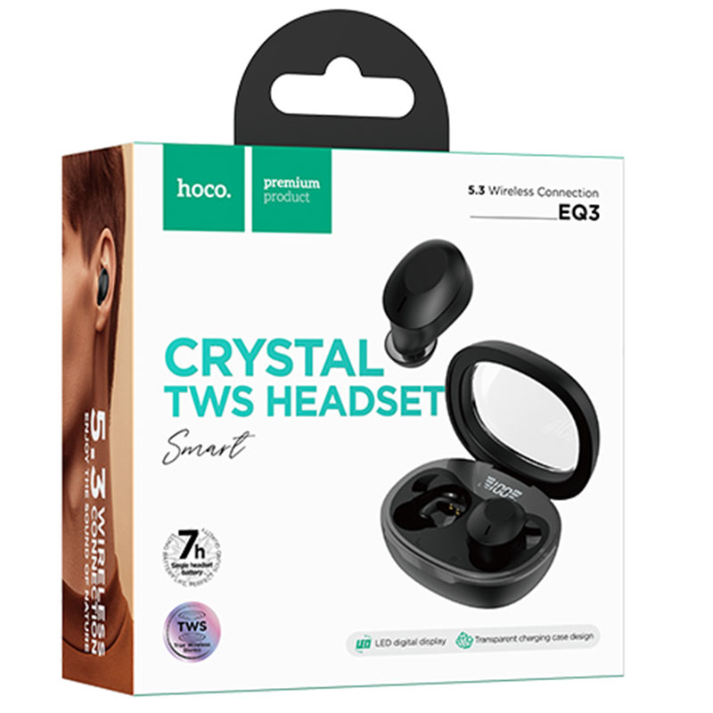 Hoco (EQ3) – Casti Wireless, Ear Buds, BT 5.3, 150h StandBy, 300mAh, Smart True, Black