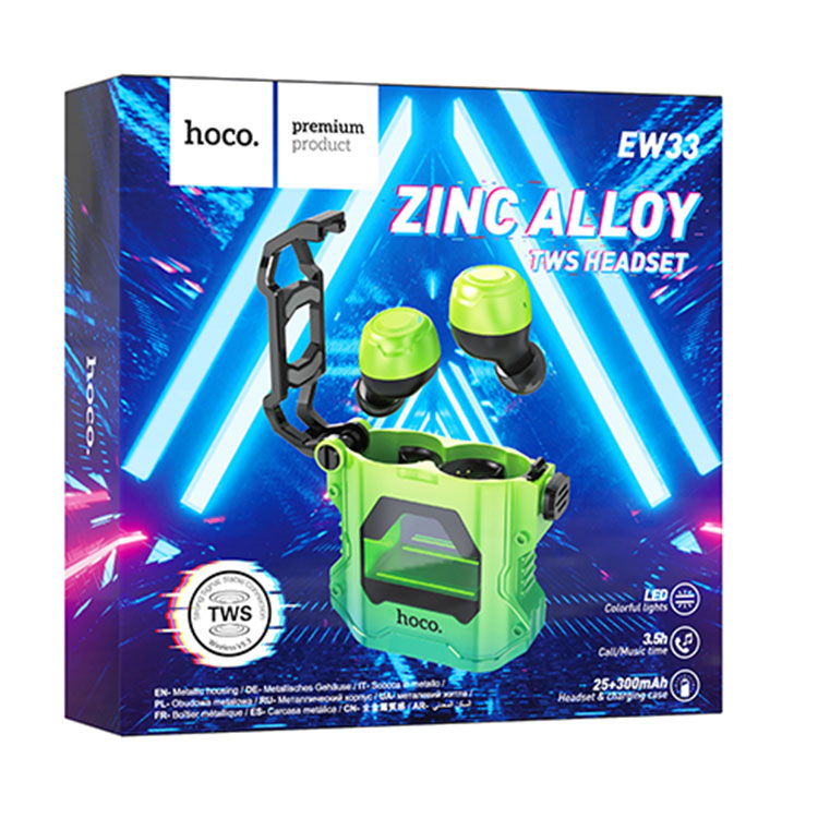 Hoco (EW33) – Casti Wireless, Ear Buds, BT 5.3, 150h StandBy, 300mAh, Interstellar | Green