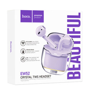 Hoco (EW52) – Casti Wireless, Ear Buds, BT 5.3, 180h StandBy, 300mAh, Crystal, Purple