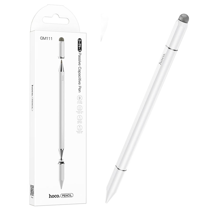 Hoco (GM111) – Creion capacitativ + Stylus Pen 3 in 1, pentru ecran telefon/tableta, White