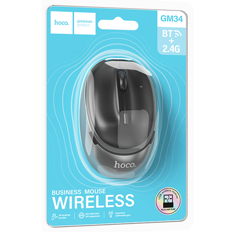 Hoco (GM34) – Mouse Dual, BT 5.0/ Wireless 2.4G, 1.600 DPI, 4D Button, Nuevo, Black/GRAY