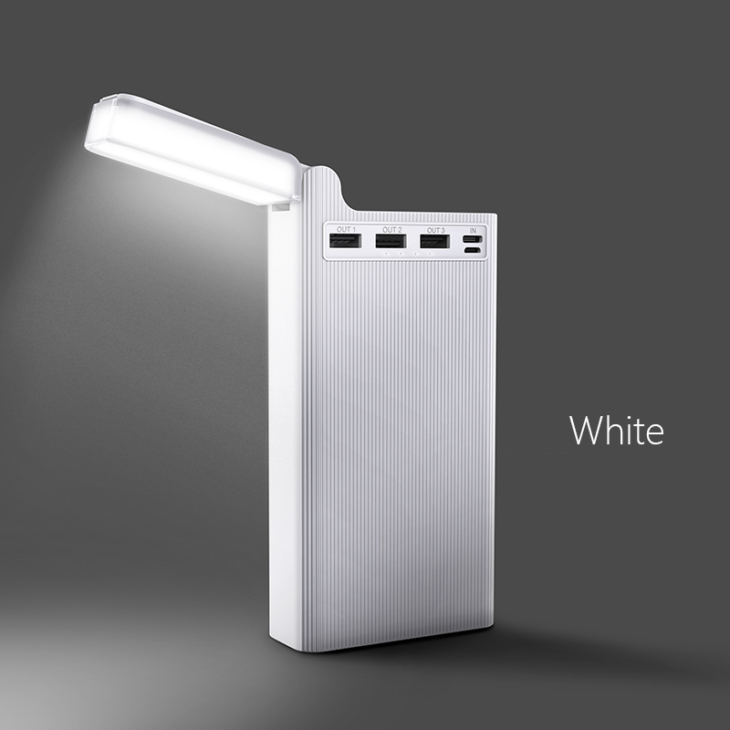 Hoco (J62) – Baterie Externa, 3xUSB-A, Wireless Charging, lampa LED, 30.000 MAh, White
