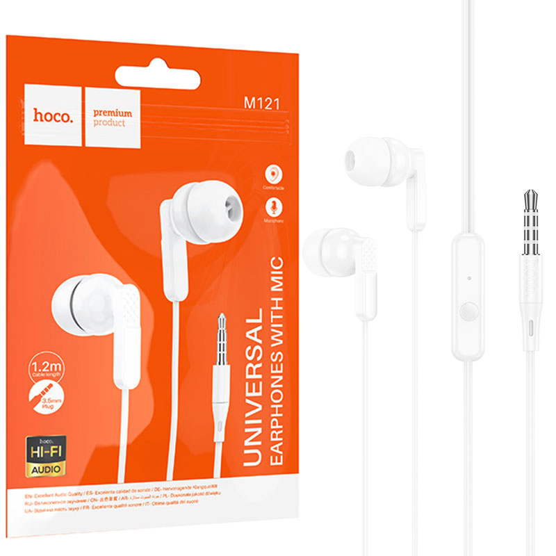 Hoco (M121) – Casti cu Fir, In Ear, 3.5mm, 1.2m, Mic & Volume Key, HiFi, White