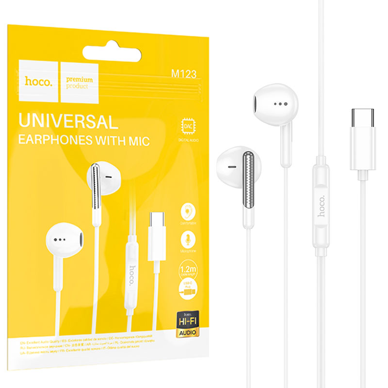 Hoco (M123) – Casti cu Fir, In Ear, USB-C, 1.2m, Mic & Volume Key, HiFi, White