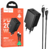 Hoco (N41) – Incarcator Retea + Cablu USB-C, 20W, 1xUSB-C, 1xUSB-A, PD, QC 3.0, Black