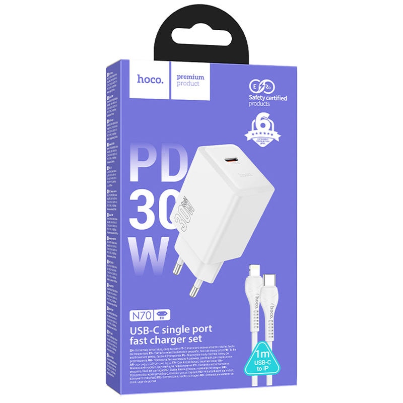Hoco (N70) » Incarcator Retea + Cablu Lightning, 1m, (PD30W) 1xUSB-C, FastCharge, BLACK