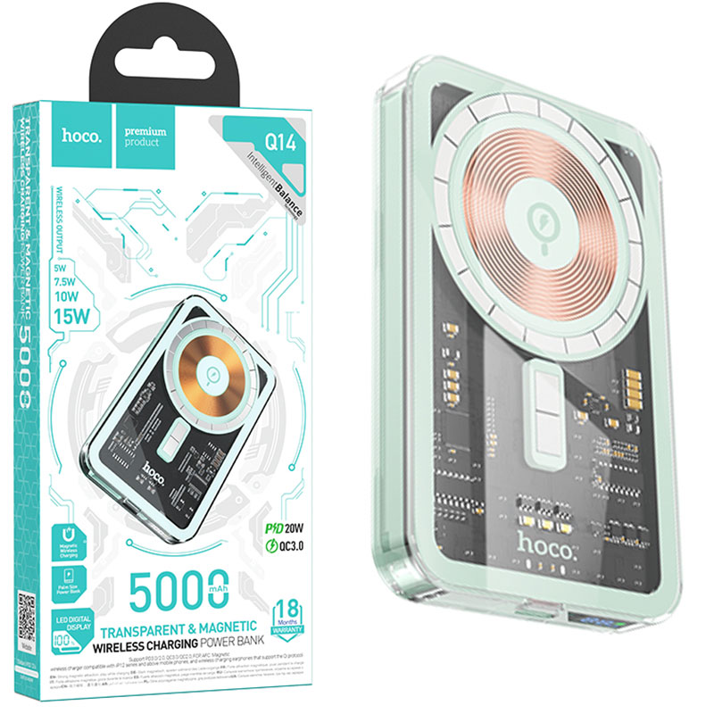 Hoco (Q14) – Baterie Externa Wireless, 1xUSB-C PD, 5V, 2A, Magnet, Display LED, 5.000mAh | Blue