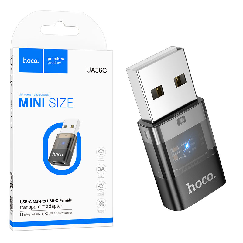 Hoco (UA36C) » Adaptor OTG Transfer/Incarcare, USB-C la USB, 2A, BLACK/Clear