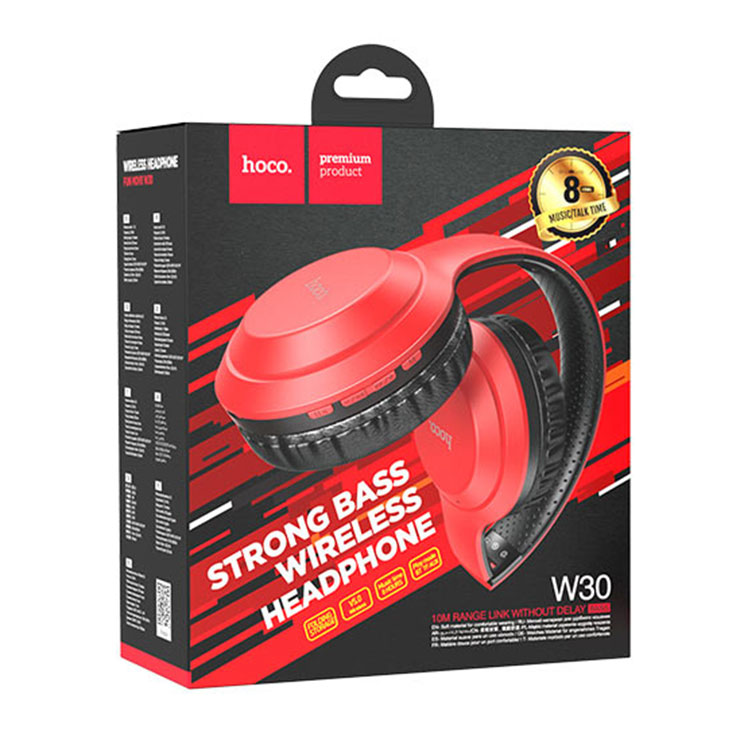Hoco (W30) – Casti Wireless, Over Ear, BT 5.0, 200h StandBy, Gaming, Fun move, Red