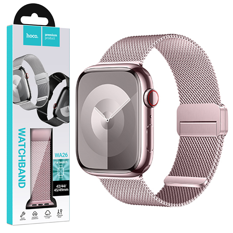Hoco (WA26) – Curea metalica, pentru iWatch, inchidere magnet, Universal Size (42/44/45/49mm) – Double Buckle, Milanese Style, Rose PINK