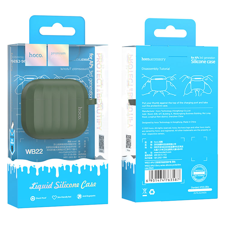 Hoco (WB22) – Husa silicon pentru carcasa AirPods 3, cu carabina si fir casti | Green