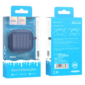 Hoco (WB22) - Husa silicon pentru carcasa AirPods 3, cu carabina si fir casti | Blue