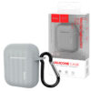 Hoco (WB10) - Husa silicon pentru carcasa AirPods 1 / 2, cu carabina si fir casti, Gray