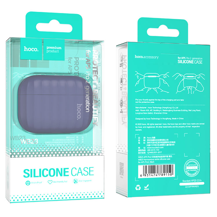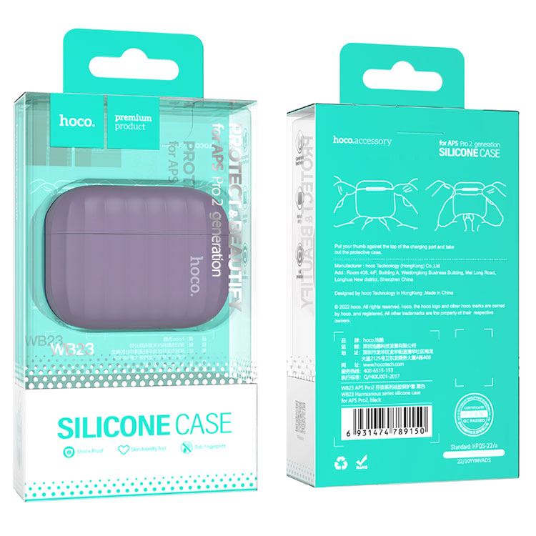 Hoco (WB23) - Husa silicon pentru carcasa AirPods Pro2 si Lanyard, Purple