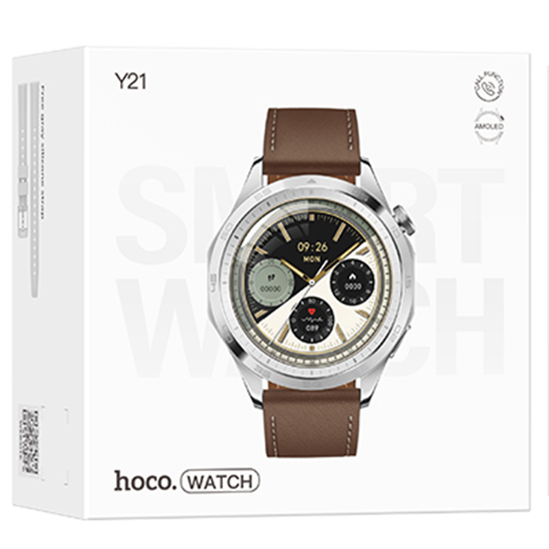 Hoco (Y21) – Ceas SmartWatch, Amoled, BT 5.0, Multifunction + telefon, 250mAh, Multilanguage | Silver