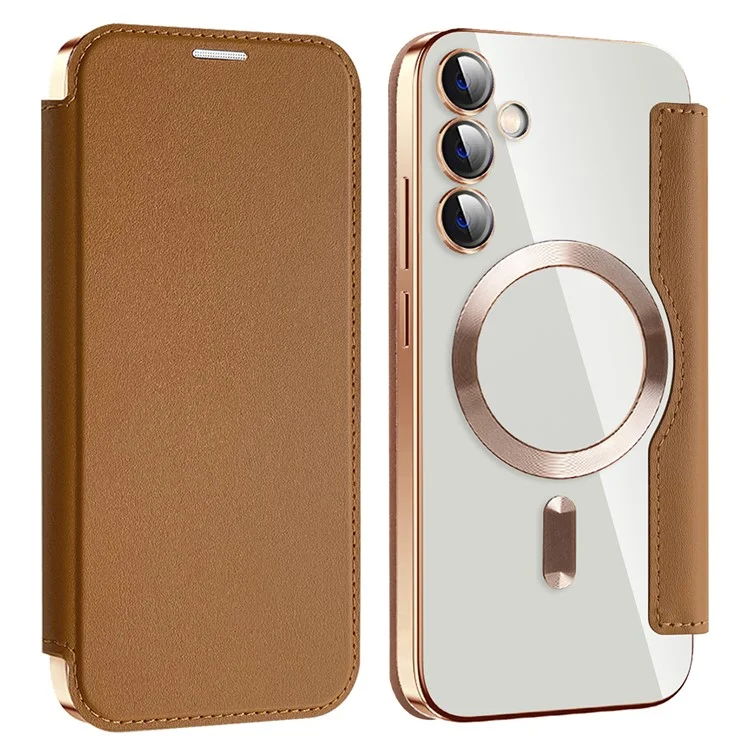 Husa MagFlip » Samsung S23 FE (S711), Magnet, RFID protect, Leather, Chrome Edge, Gold