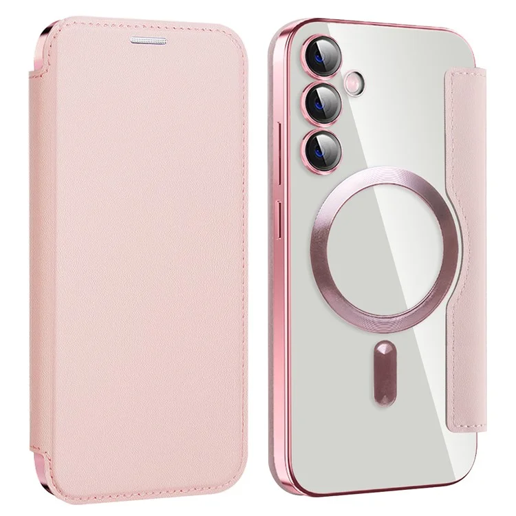 Husa MagFlip » Samsung S23 FE (S711), Magnet, RFID protect, Leather, Chrome Edge, Pink