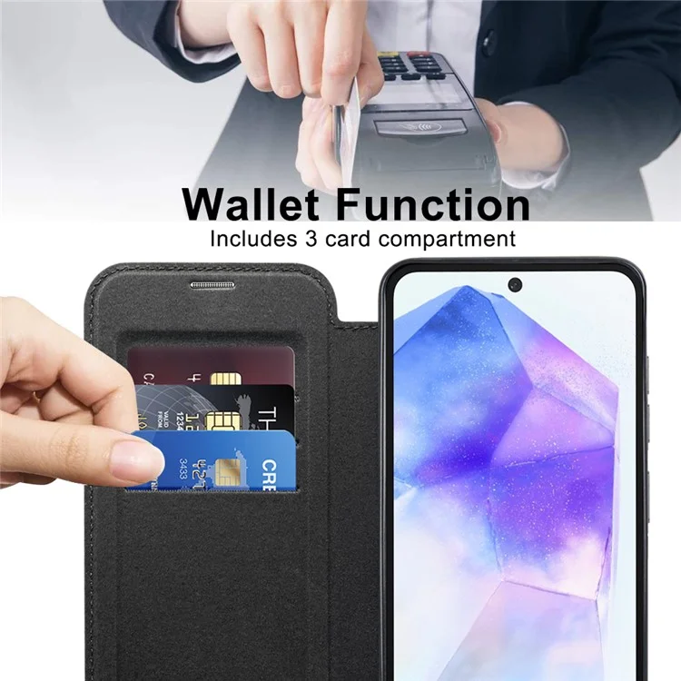 Husa MagFlip » Samsung A15 (A155), Magnet, RFID protect, Leather, Chrome Edge, Navy BLUE