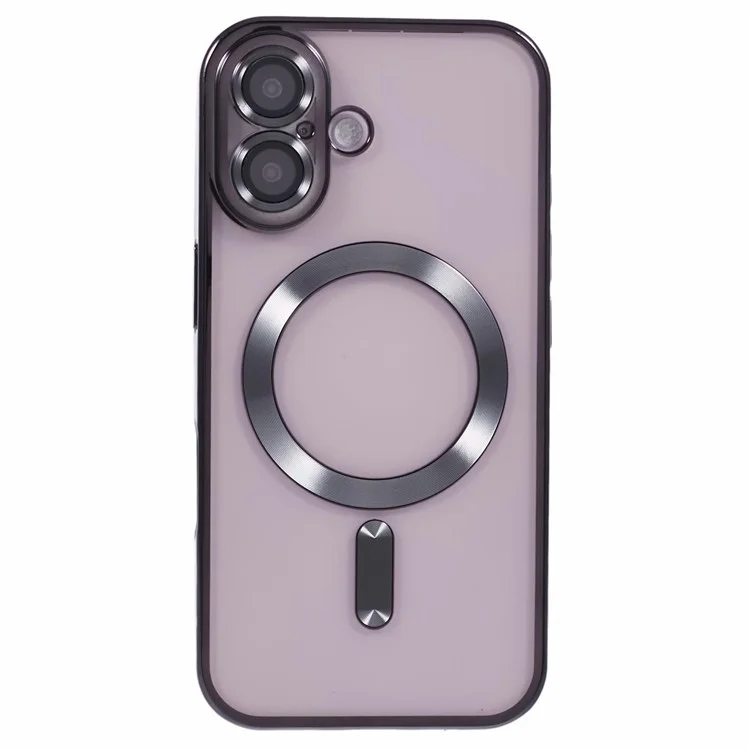 Husa Plating – iPhone 16 Plus – silicon cu MagSafe, Slim, Clear, Black