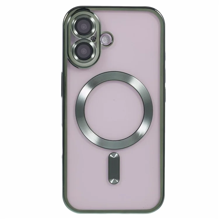 Husa Plating – iPhone 16 Plus – silicon cu MagSafe, Slim, Clear | Green