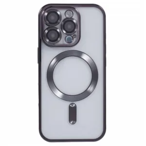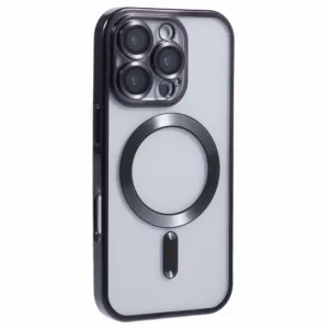 Husa Plating – iPhone 16 Pro Max – silicon cu MagSafe, Slim, Clear, Black