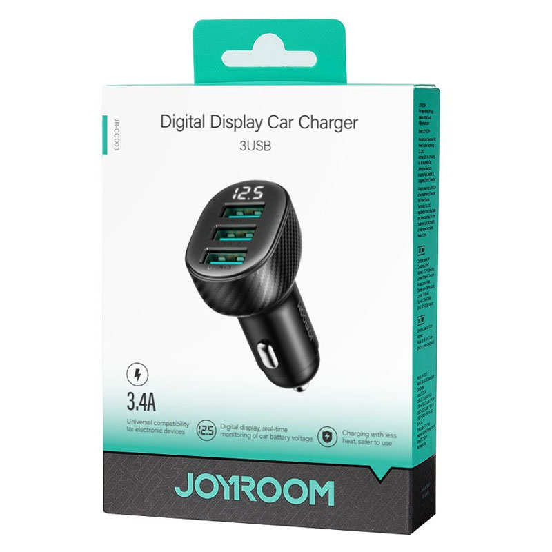 Joyroom (JR-CCD03) » Incarcator Auto, 17W, 3xUSB, QC 3.0, LED Display, BLACK