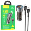 Hoco (NZ16A) - Incarcator Auto, PD43W, 1xUSB-C, 1xUSB-A, Gray