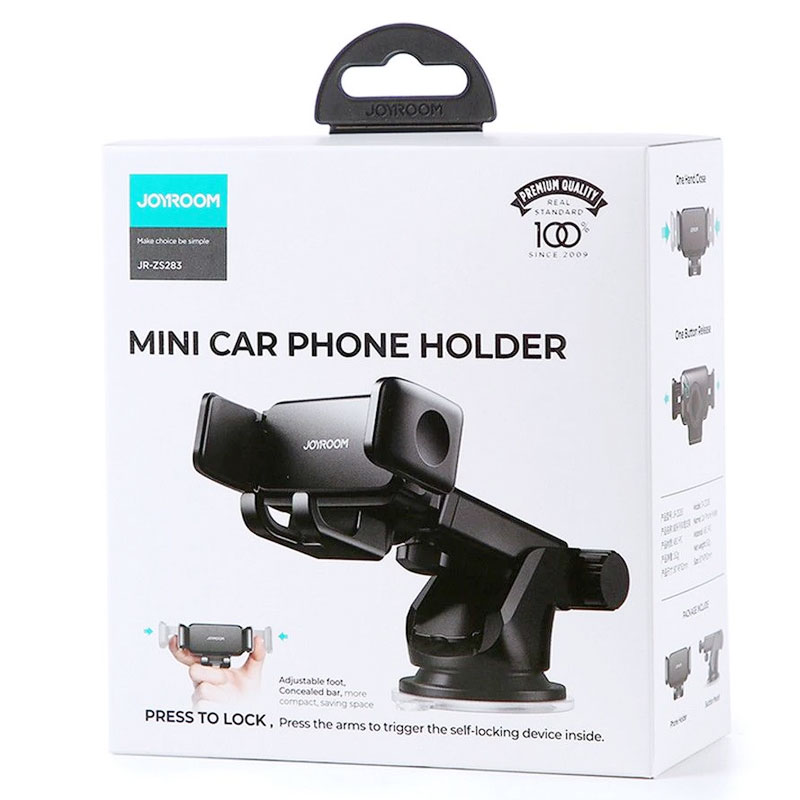 Joyroom (JR-ZS283) – Suport Auto, cu cleme laterale, montaj Bord, MultiAngle, brat ajustabil, Black