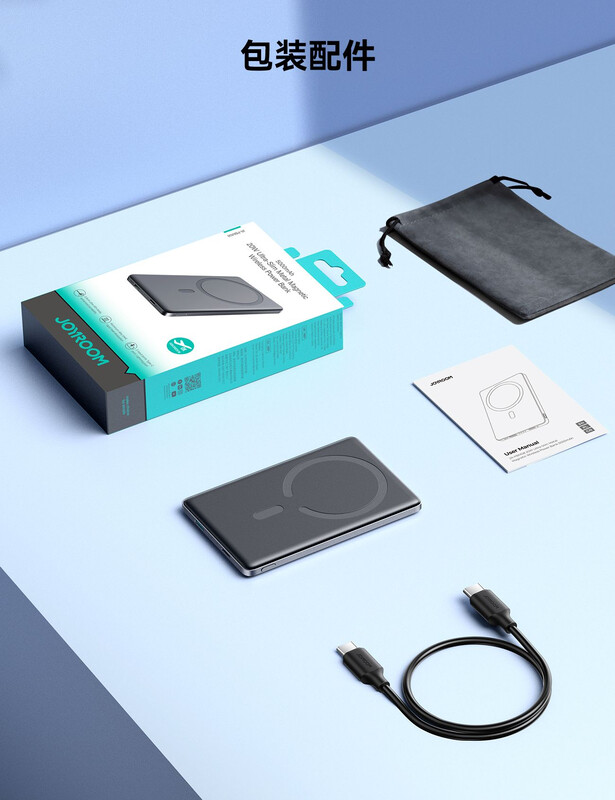 Joyroom (PBM08) » PowerBank, Wireless, 20W, 1xUSB-C, 1xUSB, PD, QC3.0, Fast, UltraThin, GRAY