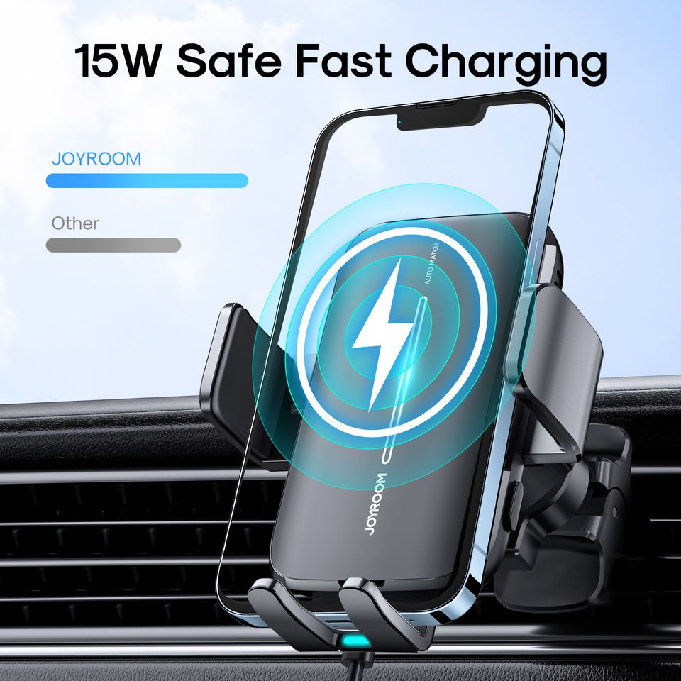 Joyroom (ZS245) – Suport Auto cu incarcare Wireless, 15W, cu cleme, montaj Ventilatie, AutoSensor, Black