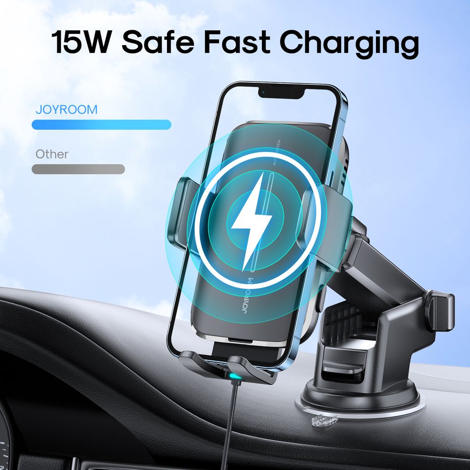 Joyroom (ZS245) – Suport Auto cu incarcare Wireless, cleme laterale, montaj Bord, MultiAngle, brat ajustabil, Black