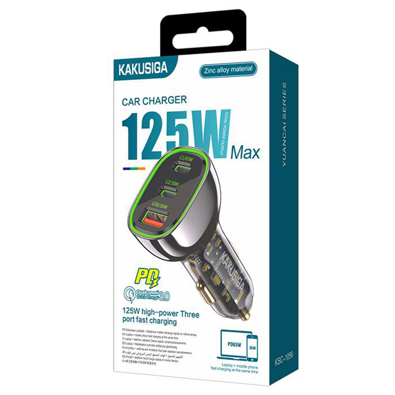 Kaku (KSC-1056) – Incarcator Auto, 125W, 2xUSB-C, 1xUSB-A, PD, QC 3.0, Black
