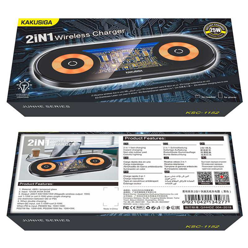Kaku (KSC-1152) – Incarcator Wireless, 15W, Qi Charging, Fast Charging, Retro, Black