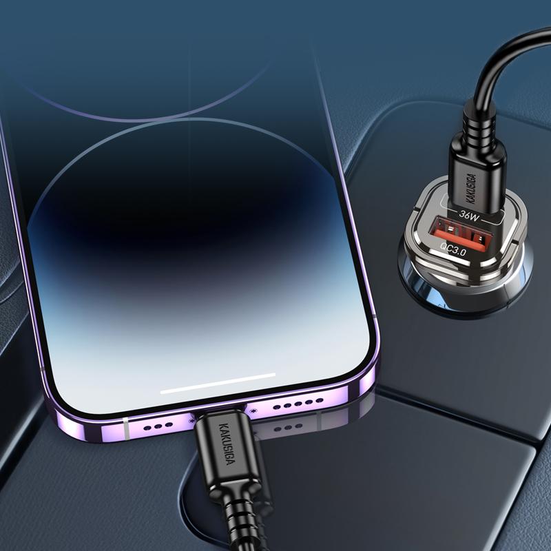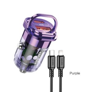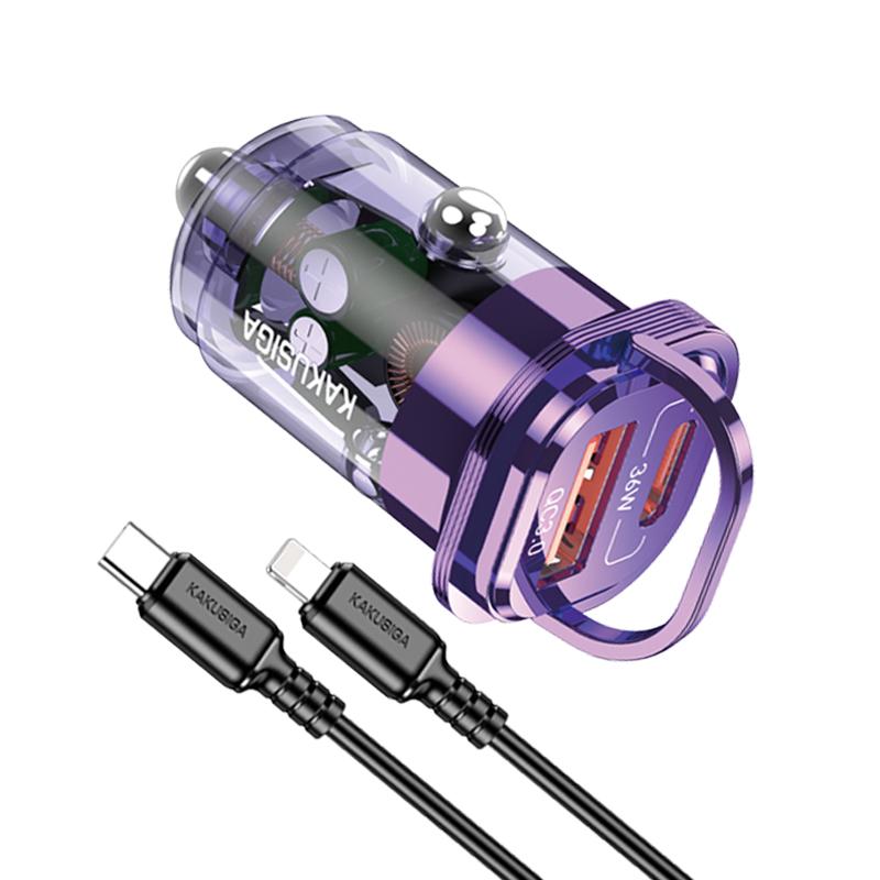 Kaku (KSC-1193) – Incarcator Auto + Cablu Lightning, 1m, PD36W, 1xUSB-C, 1xUSB-A, Purple