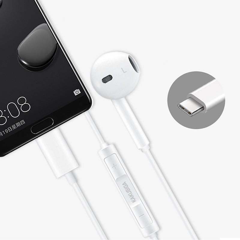 Kaku (KSC-144) – Casti cu Fir, In Ear, USB-C, 1.2m, Mic & Volume Key, HiFi, White (Compatibil Huawei)