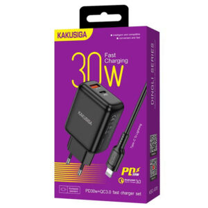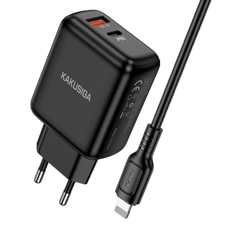 Kaku (KSC-670) – Incarcator Retea + Cablu Lightning, 30W, 1xUSB-C, 1xUSB-A, PD, QC 3.0, Black