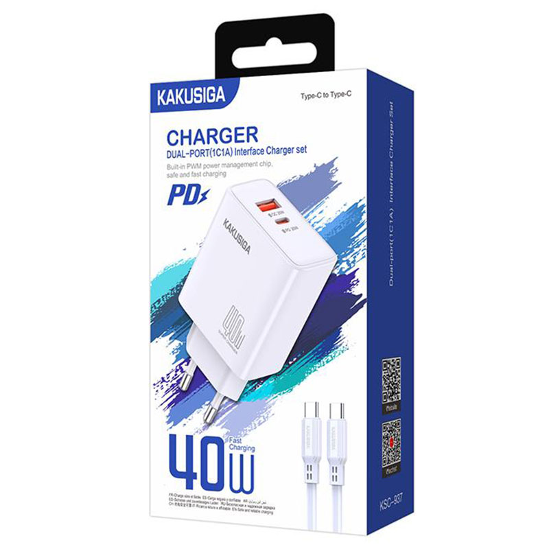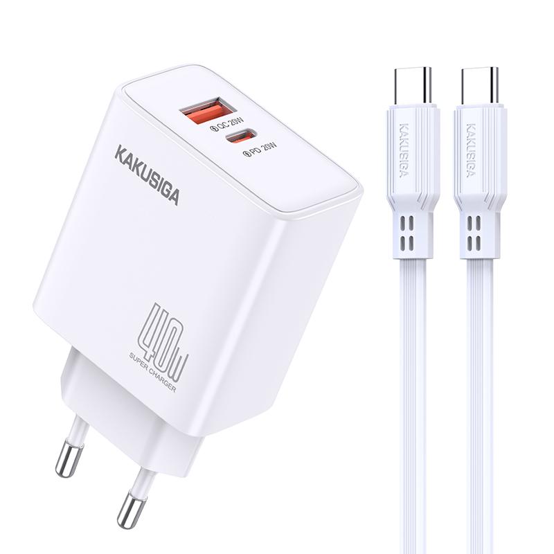Kaku (KSC-937) – Incarcator Retea + Cablu USB-C, 40W, 1xUSB-C, 1xUSB-A, PD, QC 3.0, White