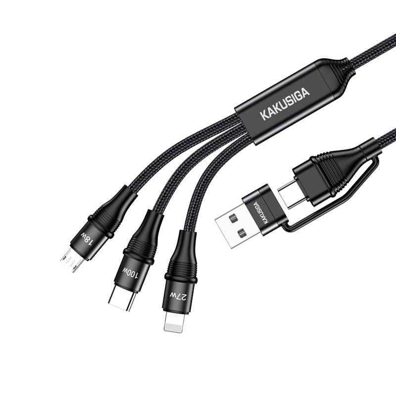 Kaku (KSC-989) – Cablu Date si Incarcare, USB-A / USB-C la Lightning / MicroUSB / USB-C, PD100W, QC3.0, 1.2m, White