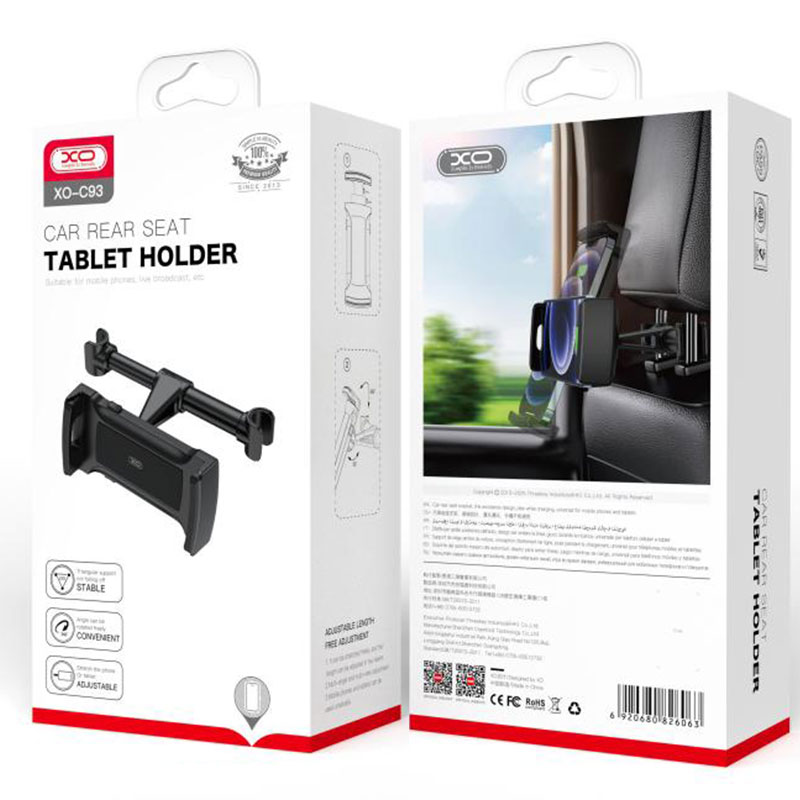 XO (C93) – Suport Auto, cu cleme laterale, montaj Tetiera, MultiAngle, brat ajustabil, Black