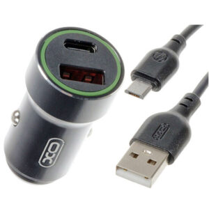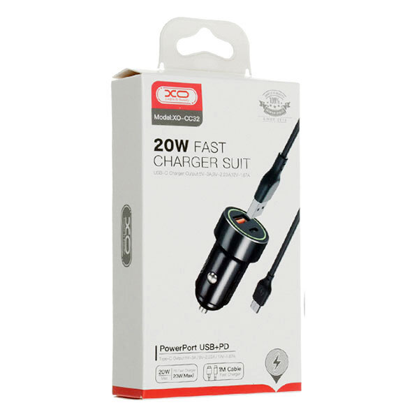XO (CC32) – Incarcator Auto + Cablu USB-C, 20W, 1xUSB-C, 1xUSB-A, PD, QC 3.0, Black