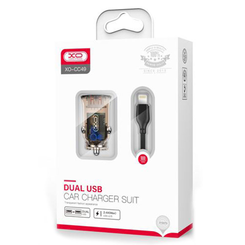 XO (CC50) – Incarcator Auto + Cablu Lightning, 33W, 1xUSB-C, 1xUSB-A, PD, QC 3.0, Clear Design, BROWN