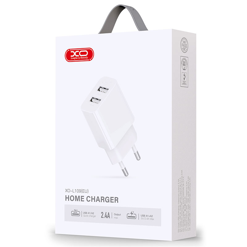 XO (L109) – Incarcator Retea, 2.4A, 2xUSB-A, QC 3.0, White