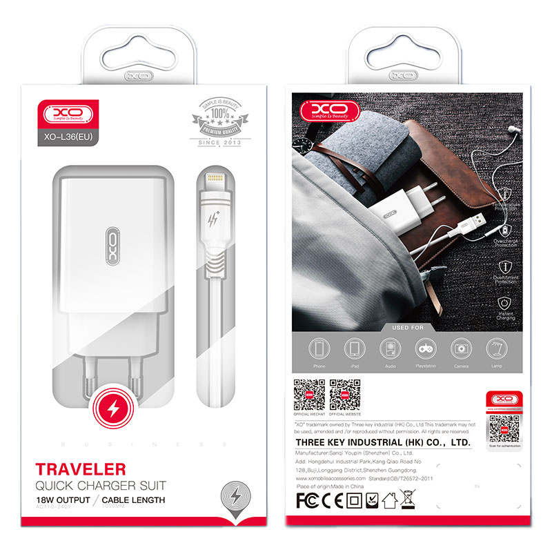 XO (L36) – Incarcator Retea + Cablu Lightning, 18W, 1xUSB-A, QC 3.0, White