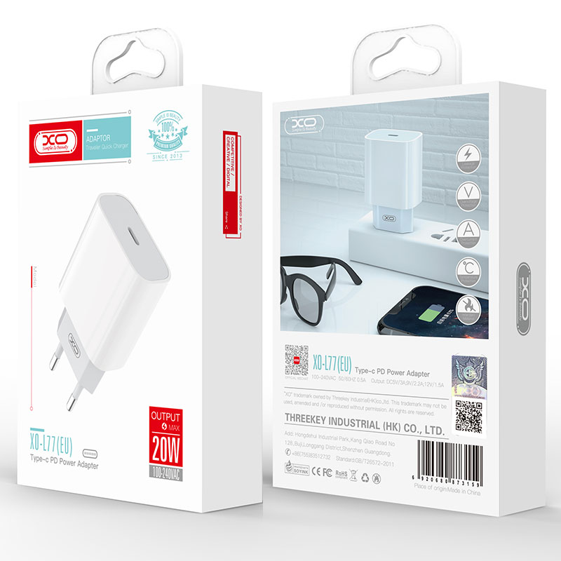XO (L77) – Incarcator Retea, 20W, 1xUSB-C, PD, White